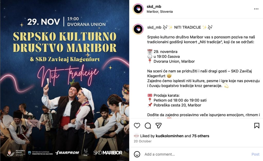 Program ove godine ima posebnu težinu, jer će se na sceni SKD Mariboru pridružiti i gosti iz Austrije – SKD „Zavičaj“ Klagenfurt, čiji će nastup dodatno obogatiti večernji repertoar. Očekuje se raznovrstan prikaz srpskih narodnih igara, tradicionalnih pesama i koreografija koje oslikavaju kulturno nasleđe različitih krajeva Srbije.